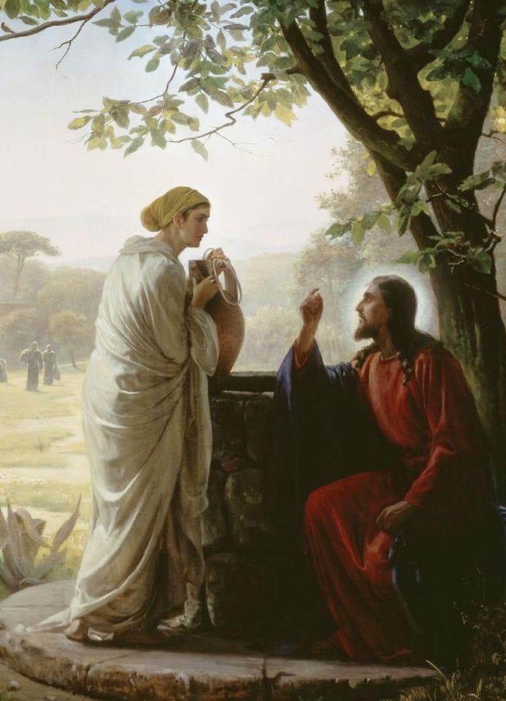 E quando eu disse que a mulher tem o poder de influência na esfera existencial para o mal não falei que ela também tem para o bem, e é aqui que fica isso fica evidente. A Samaritana poderia muito bem ter recusado as Palavras de Cristo, nos mesmos moldes de Eva lá no Éden, mas ela foi até a cidade e anunciou que o homem que falou com ela poderia ser o Messias.